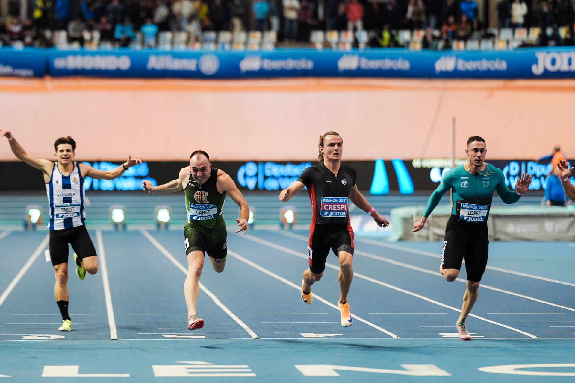 Sin sorpresas en las vallas masculinas, con los favoritos pasando sin problemas a semifinales. El más rápido ha sido el plusmarquista nacional, el valenciano Enrique Llopis, que venció en casa con 7.66. En la primera ganó el navarro Asier Martínez, con 7.80. El madrileño Daniel Cisneros se adjudicó la segunda, con 7.83, y el también madrileño Ángel Díaz la tercera, con 7.80. Destaquemos también los 7.81 de Daniel Castilla.