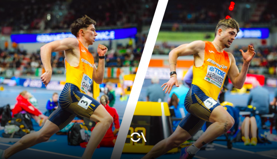 David García, a la izquierda, y Markel Fernández, a la derecha, pasan a semifinales de los 400 metros del Mundial de pista cubierta. FOTORUNNERS.