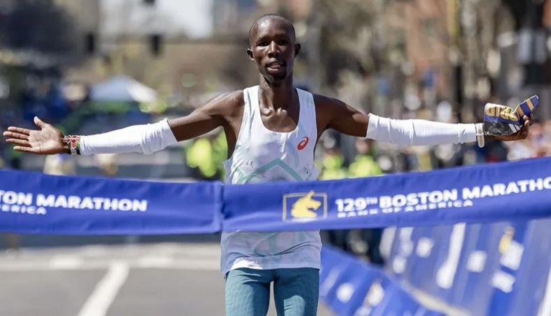 John Korir ganando el Maratón de Boston 2025. EFE.