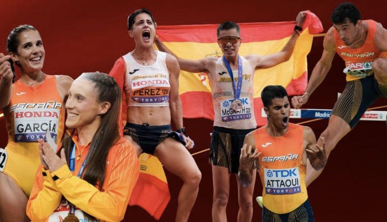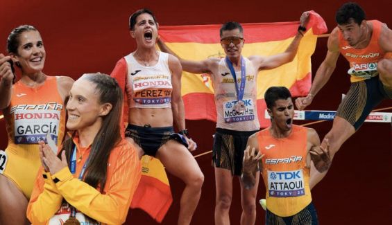 - María Pérez. La marchadora granadina ha sobresalido de nuevo en una temporada histórica, confirmando su dominio absoluto en la marcha mundial. Pérez se proclamó bicampeona del mundo en 20 km y 35 km marcha, consiguiendo de nuevo el doblete y entrando en el selecto grupo de atetas que han logrado esta gesta jutno a nombres como Usain Bolt, Mo Farah o Carl Lewis, un hito que la constató como mejor atleta del mundo “out of the stadium” por la World Athletics. También fue primera en el Campeonato de Europa de marcha por equipos y subcampeona de Europa por equipos, consolidando una temporada de referencia internacional.