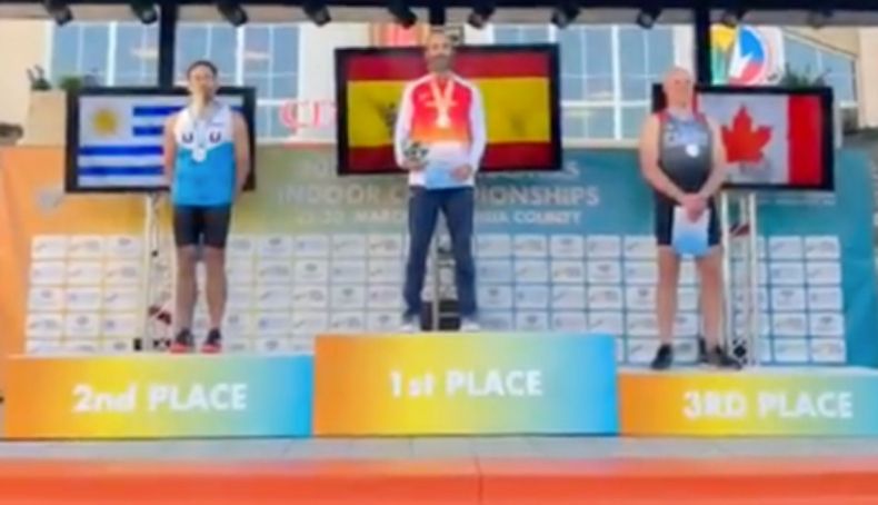 Se proclama campeón del Mundo M45 de Pentatlón y le ponen el himno con letra franquista