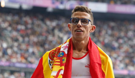 Yassine Ouhdadi dio una exhibición de fuerza y poderío sobre la pista para revalidar en el Estadio de Francia, con una enorme autoridad, la medalla de oro de los 5.000 metros, clase T13 de discapacitados visuales, lograda en Tokio 2020 hace tres años.