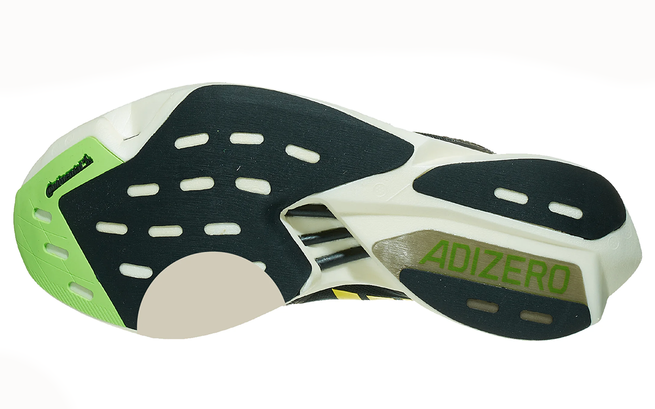 Su nueva geometría se basa en su hermana superior (en precio) Adizero Adios Pro EVO 1, incorporando la súper espuma Lightstrike Pro. Adidas mejora el compuesto, según ellos, para ser más liviana, más suave y con mayor capacidad de respuesta. También cambia la curvatura, siendo más agresiva en la parte delantera, y la media suela de doble capa tiene integrada las conocidas Energy Rods 2.0 de fibra de carbono de longitud completa (no es una placa como la de otras marcas). Estos elementos se combinan de manera holística para conseguir una mejor experiencia al reducir la fatiga y teniendo una propulsión más eficiente y rápida.