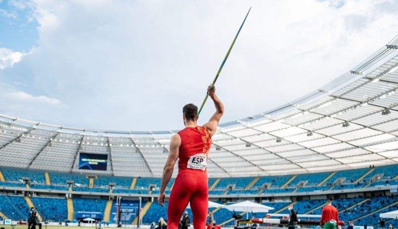 Odei Jainaga durante una competición con la selección española de atletismo. SPORTMEDIA.