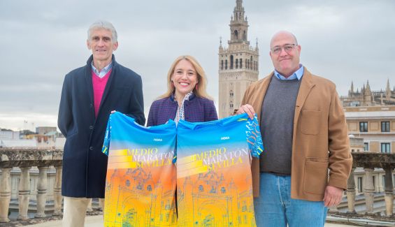 El Medio Maratón de Sevilla 2026 celebrará su trigésimo primera edición el 25 de enero y presenta muchas novedades de cara a una edición histórica. La prueba, que próximamente anunciará algunas variaciones a su trazado que permitirán varias salidas en oleadas para mayor comodidad de los hasta 20.000 participantes que agotaron los dorsales con más de 6 meses de antelación, ha desvelado hoy las camisetas que todos los inscritos recibirán junto con la bolsa del corredor los días 23 y 24 de enero en la expo en el pabellón de San Pablo. Las camisetas las ha presentado María Tena, delegada de Deportes del Ayuntamiento de Sevilla; junto con Antonio Olivencia, presidente del Club de Atletismo San Pablo; y Mateo Navajas, director de Create Deporte.