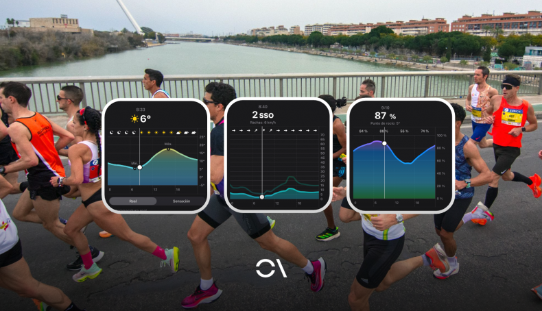 Si hablamos del viento, después de unas semanas complicadísimas no solo en Sevilla sino en toda Andalucía, los valores el domingo serán extraordinariamente bajos. A la hora de la salida apenas soplarán vientos de 2 km/h, algo imperceptible, y se mantendrán bajos durante todo el día, con valores máximos de 11km/h a las 15:45h de la tarde, ya acabada la prueba.